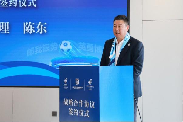 在国家“体育强国”战略和总行金融赋能城市发展策略的引导下,10月29日上午,大连英博足球俱乐部与邮储银行大连分行、邮政大连市分公司正式签署战略合作协议,市委宣传部新闻处宋强处长到场见证,三方携手开启“金融+邮政+足球”的跨界合作新篇章,为大连“足球城”振兴工作注入新的活力。